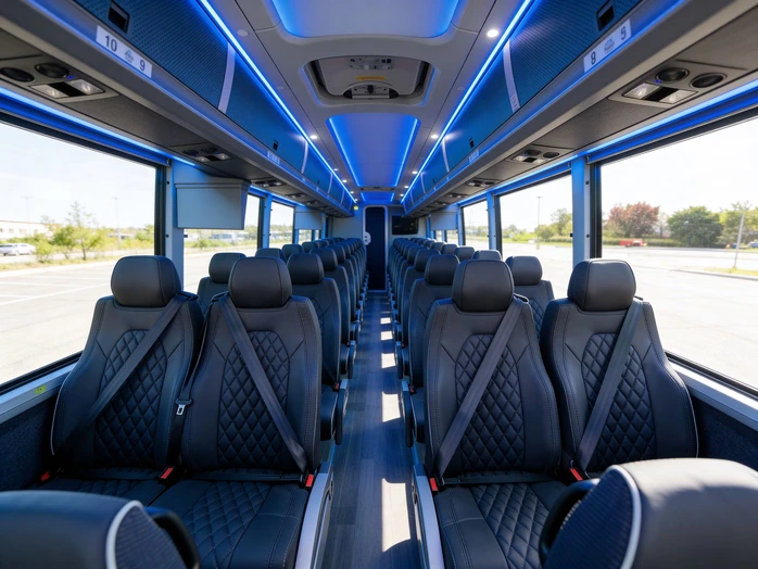 This bus is built for fun and comfort. You’ll find perimeter leather seating so everyone can talk and move around easily. The sound system packs a punch, and you can connect your phone by Bluetooth or AUX to play your own playlists. LED lighting, flat-screen TVs, and a built-in bar area set the mood for any celebration. Deep tinted windows and a privacy partition keep things discreet. There’s climate control to keep everyone comfortable, plus USB charging ports at every seat. It’s a true party on wheels.